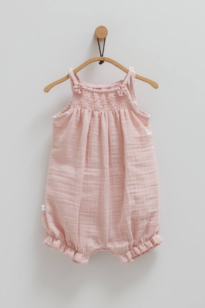 Kız Bebek Müslin ayarlanabilir ip askılı gül kurusu şort tulum